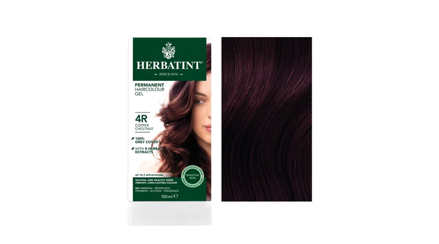 A Herbatint 4R Réz gesztenye növényi hajfesték a legszebb természetes réz gesztenye hajfesték, amely nem roncsolja a hajszálakat! Selymes, fényes haj, kiváló őszfedés!