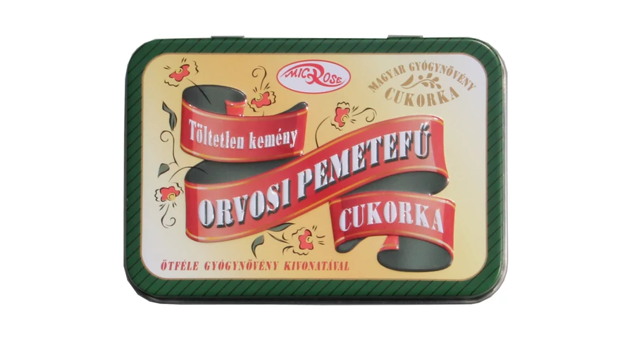 Töltetlen kemény orvosi pemetefű cukorka. Gyógynövény összetevőinek hatása népgyógyászati tapasztalatokon alapszik.
