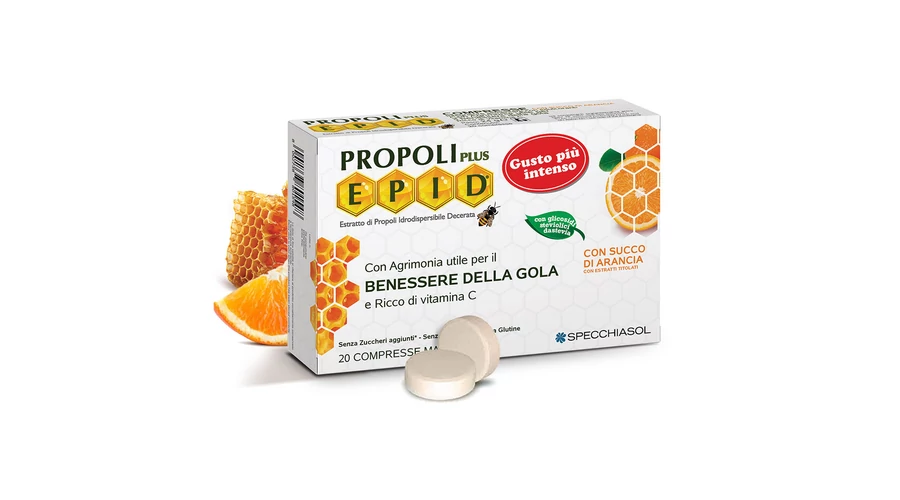 A Natur Tanya Specchiasol Epid propolisz szopogató tabletta édesítőszerrel, narancsos ízben, 6 éves kortól ajánlott az immunrendszer támogatására, fáradság és kimerültség esetén, torokfájásnál.
