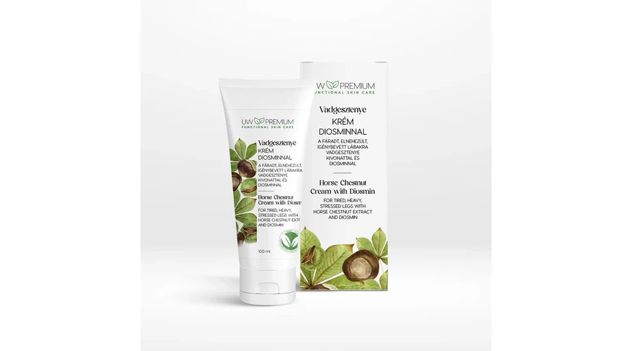 Az UW Premium Vadgesztenye Krém Diosminnal visszérre, természetes ápolást biztosít visszeres, fáradt lábakra. Magas koncentrációban tartalmaz vadgesztenye kivonatot, amely segítheti a visszeres tünetek enyhítését és a hajszáleres keringés egészségének fenntartását.