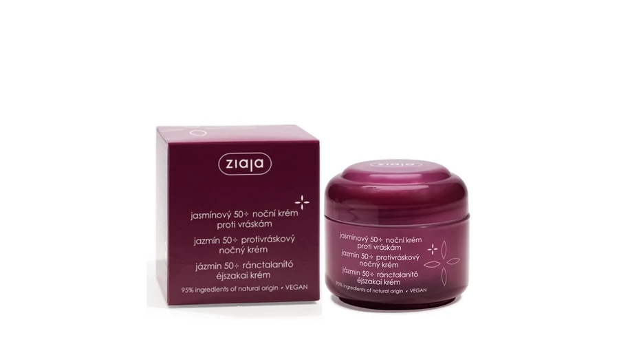 A ZIAJA Jázmin ránctalanító éjszakai arckrém 50 év felett egy gazddag összetételű exkluzív emulzió, az érett bőr mindennapi ápolására. 95%-ban természetes eredetű összetevőkkel hidratálja, simává és rugalmassá varázsolja a bőrt.